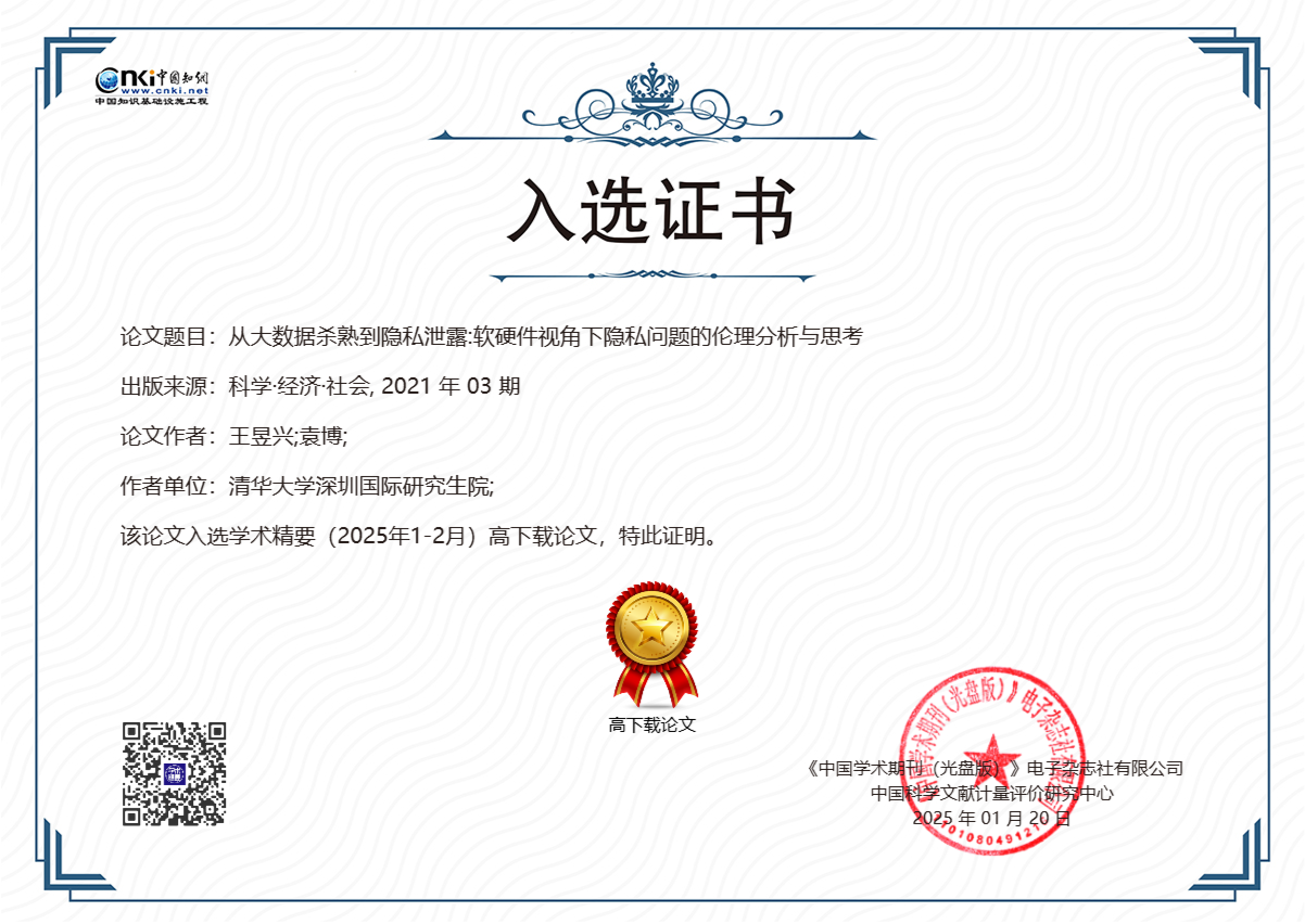 Wang, Y.X. and Yuan, B. (2021) "From Big Data Based Price Discrimination to Privacy Leakage: Ethical Analysis and Reflections on Privacy Issues from the Perspective of Hardware and Software". Science Economy Society, vol. 39(3), pp. 72–81. doi: 10.19946/j.issn.1006-2815.2021.03.006 Link Certificate