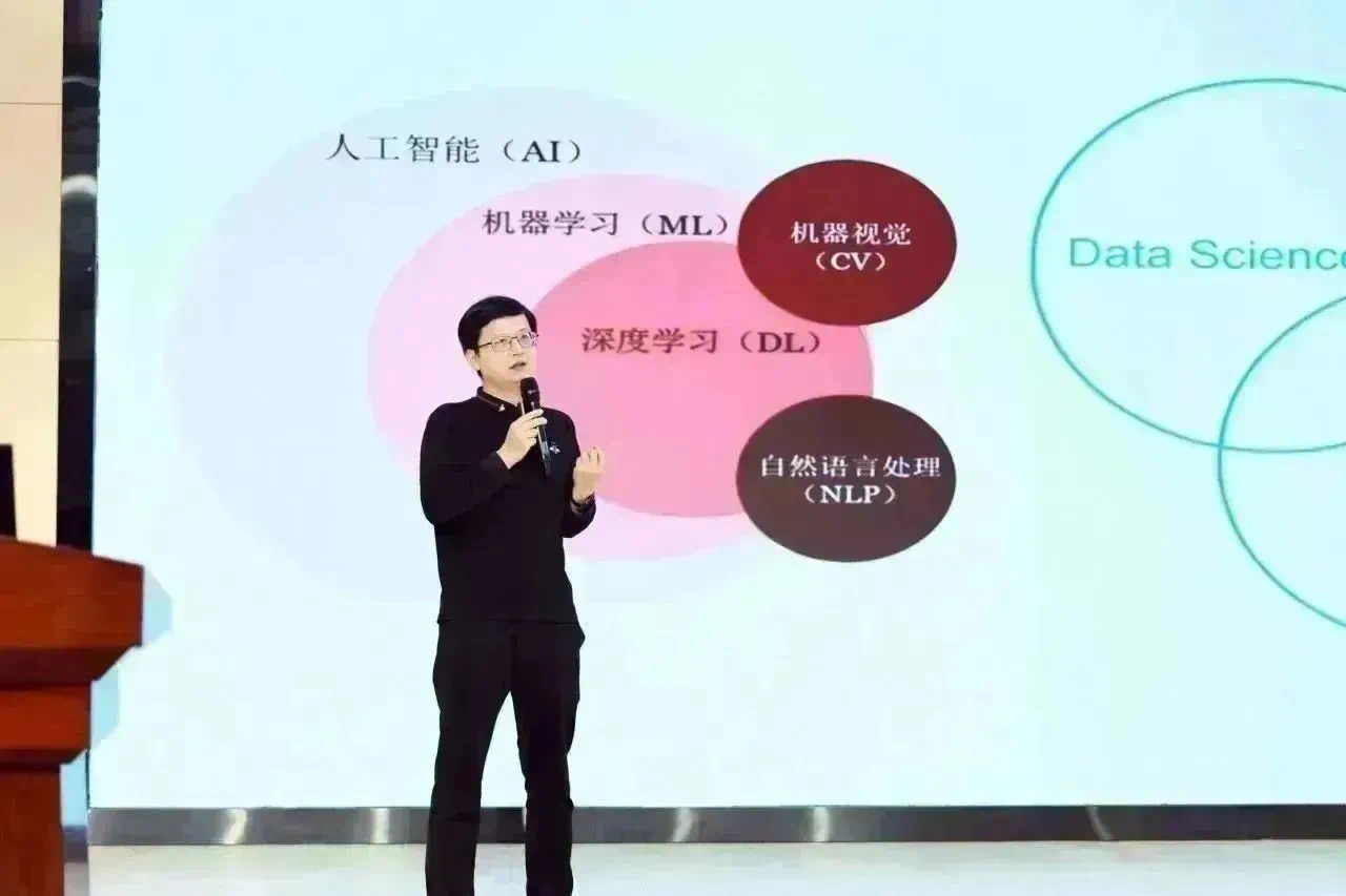 讲座中,袁教授以“从大数据到人工智能”为主题,通过大量的图片、视频,深入浅出地阐述了数据与智能、挑战与发展、AI遇见教育、通向未来之路四个方面的内容,尤其重点介绍了“大数据”和“人工智能”在实际生活中的应用,不仅让学生们深入了解了现代科技的魅力,更点燃了学生的科技梦。大数据乘时代之风而来,这是个数据为王的时代。袁教授为同学们介绍了大数据产生的背景、信息技术发展的历程,与同学们互动,引导同学们结合生活案例去思考:“大数据时代,我们可以做些什么?”